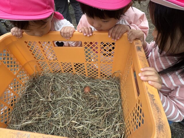 幼稚園で飼育しているにわとりさんがたまごを産みました。「どのにわとりさんがうんだのかな?」「どんなひよこさんがうまれるかな?」と興味津々のこどもたちでした。たまごから出てきたひよこが成長してにわとりになるのを見てきた子ども達は、大きく成長したにわとりに愛情と親しみを持って触れ合う姿がとても印象的です。飼育体験を通して命の不思議さ、尊さ、大切さを学んでいます。
